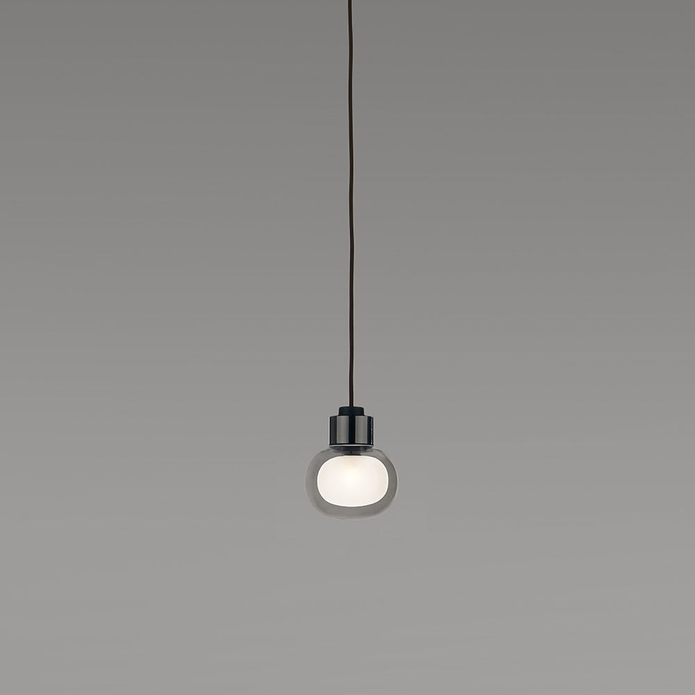 Hochwertige Glas-Pendelleuchte NABILA von TOOY im Durchmesser 12 cm oder 16 cm. Besonders ist hier der doppelwandige Glasschirm wahlweise außen in Klarglas oder mit rauchfarben Glas und innen mit einem mattierten Glas. Betreiben wird die Leuchte mit einem austauschbarem G9 Leuchtmittel, welches durch das mattierte Innenglas verdeckt wird. Die Halterung ist aus schwarzem, epoxidpulver-beschichtetem Stahl mit gebürsteten Messing oder Schwarzchrom-Elementen.