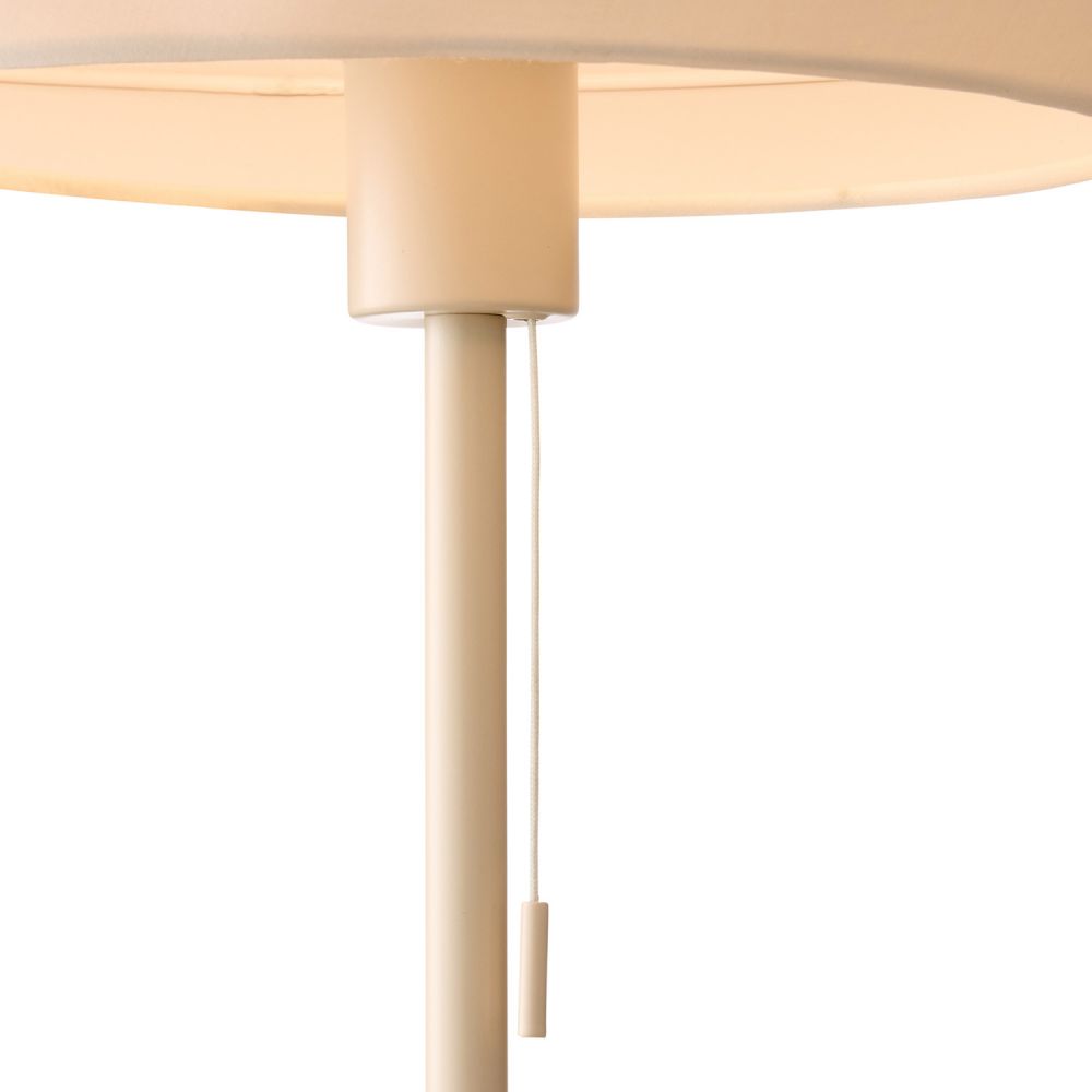 Material, Oberfläche | Schirm PVC mit Stoffbezug in Creme, Halterung helles Eichenholz, Fuß Metall in Creme, Befestigung Messing antik, Textilkabel Creme |