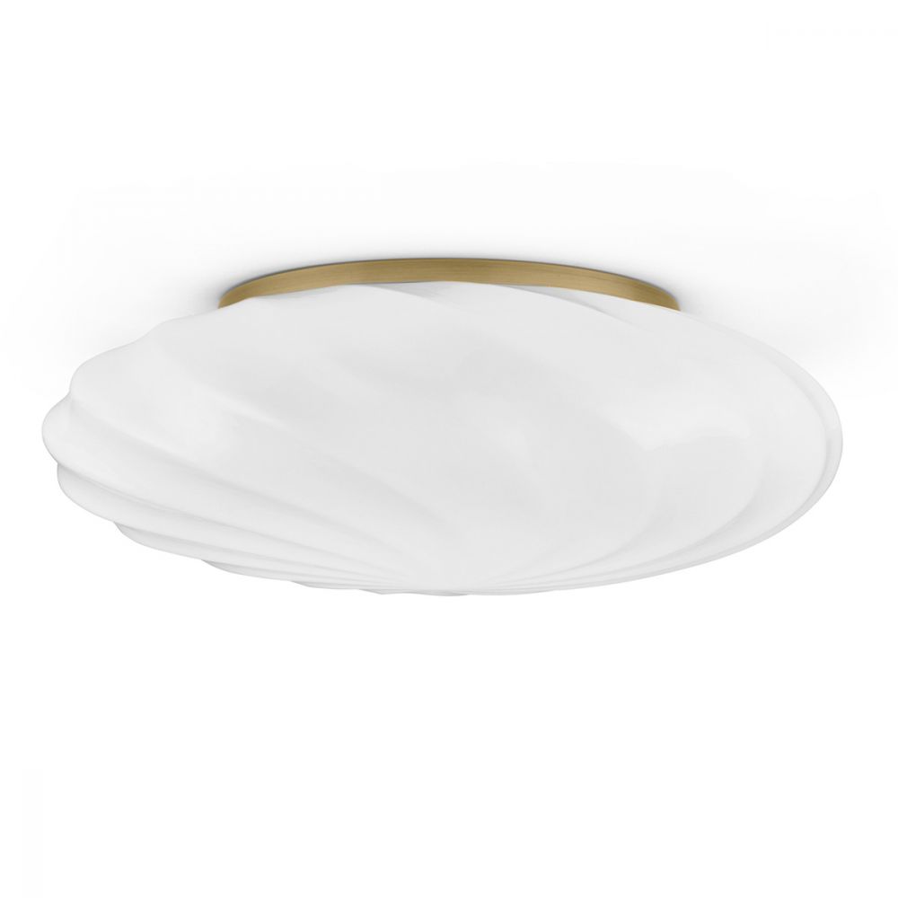 Material, Oberfläche Lampenglas in Opal, Halterung in Messing Abmessung Glas: Ø 25 cm, Höhe 11 cm Glas: Ø 35 cm, Höhe 11 cm