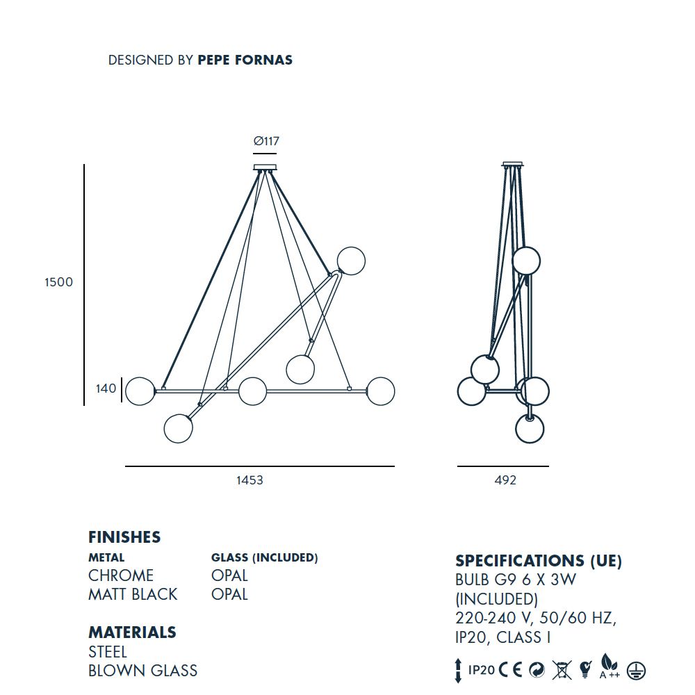 ATOM Minimalistischer Kronleuchter mit Kugelglas